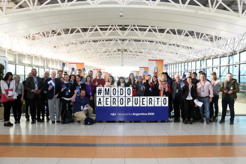 Periodistas invitados a la recorrida por el Nuevo Mix Gastronómico junto a Narda Lepes, embajadora de Aeropuertos 2000