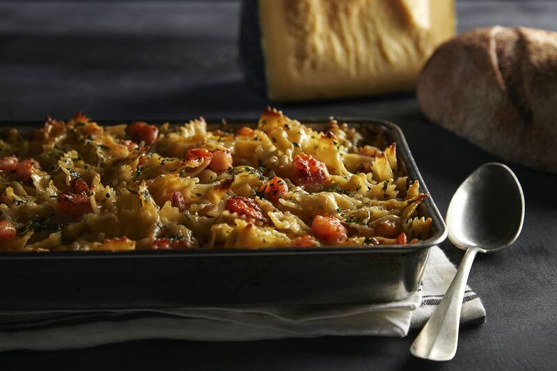 4. FIDEOS GRATINADOS CON QUESO Y CAMARONES