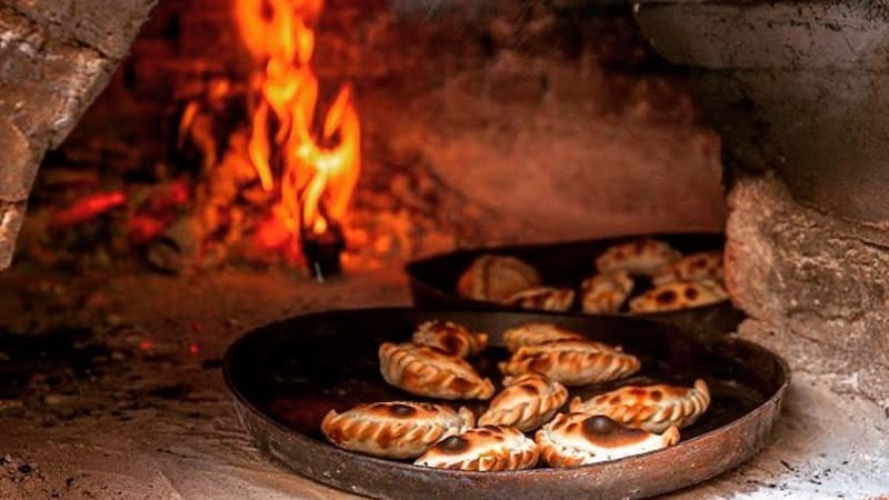 La propuesta es sencilla: empanadas de carne, de queso y salteñas potosinas (similares a las bolivianas) cocinadas al horno de barro o fritas, acompañadas de la típica salsa yasgua a base de ají locoto y tomate. No se necesita mucho más para ser feliz, o tal vez sí: Torrontés en damajuana de Domingo Hermanos; el maridaje perfecto.