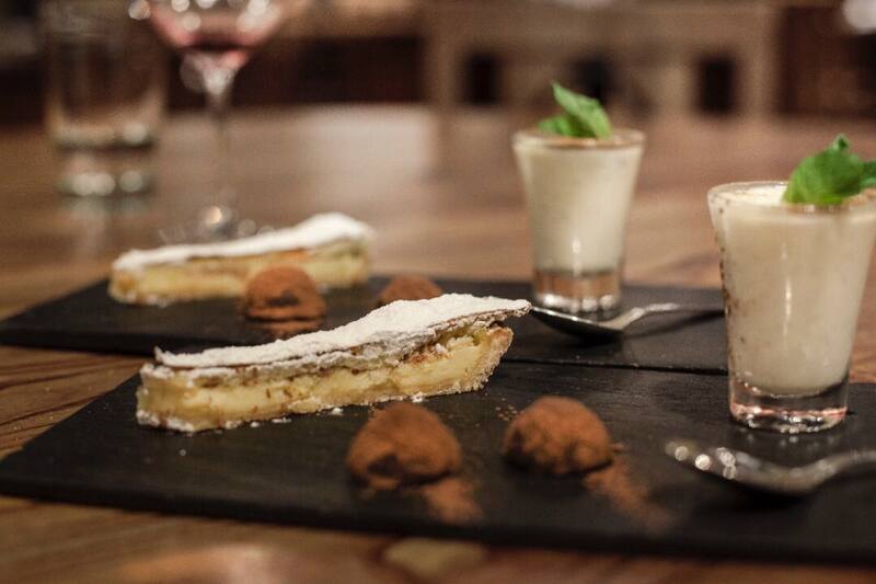 cannoli de cacao, frambuesa y chocolate. El precio por persona es de $ 1300 e incluye una botella de vino cada dos.