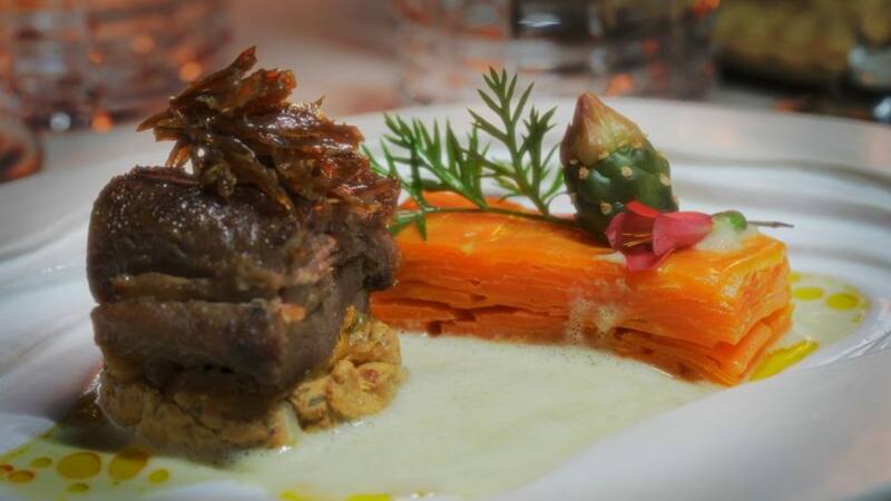 Para el concurso, la estrella de su plato era el cabrito y lo aprovecharon de manera integral, con tres propuestas que llevaban diferentes técnicas de cocción y conservación: confitura de cabrito laqueada con mermelada de tuna de las mujeres de La Cañada, charqui de cabrito -técnica ancestral para la conservación de la carne-, y paté de cabrito - donde se aprovecha el resto de la res-. La etiqueta que eligieron para maridarlo es Baron B Brut Nature.