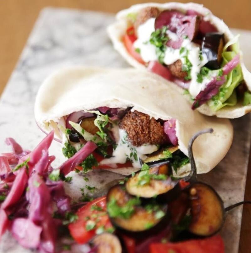 Con la inspiración del renombrado L' As du Fallafel (restaurante kosher en el barrio Le Marais en París), Falafelandia sirve el sándwich de falafel con berenjena frita, hummus (de una cremosidad única), rabanito, pepino, repollo y salsas como taratur (base de tahine y limón), zhug (de origen yeminita con limón y cilantro, ajies picantes y especias), harissa (de origen tunesina: ajo, cilantro molido, pimentón dulce y cayena), y por supuesto las más picante de las salsas, autoría de sus dueños. Todo cierra el bocado en un viaje a medio oriente.