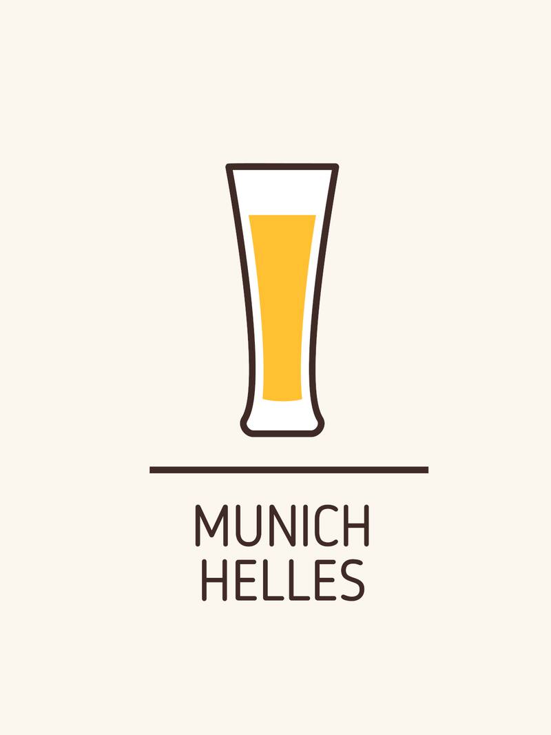 Helles. Es una lager alemana limpia, maltosa, de color dorado caro, con aroma y sabor a malta a grano-dulce y un final suave y seco. Lúpulos sutiles, florales o herbales de contenido amargor ayudan a mantener el balance maltoso pero no dulce, lo que ayuda a que esta cerveza sea una bebida refrescante, de todos los días.