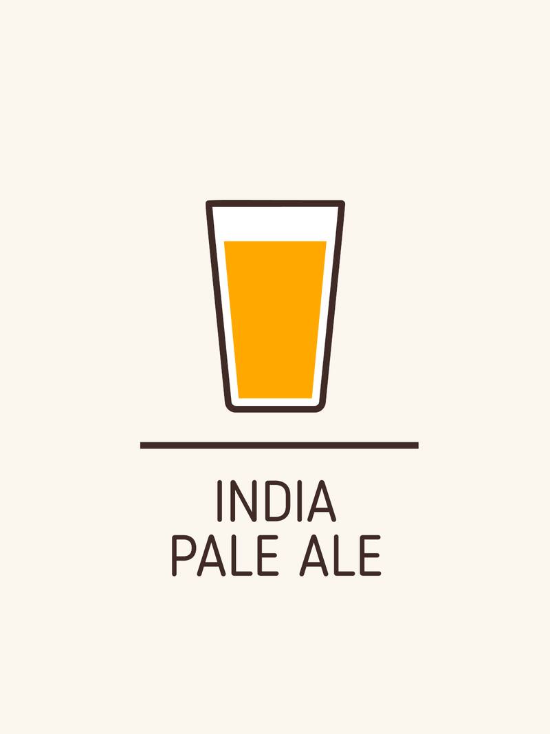 India Pale Ale (IPA). Tiene su origen en la expansión comercial de Inglaterra y se creó para adaptarse a las condiciones adversas del viaje hacia las colonias británicas en India. Hoy en el mercado hay una gran variedad que se desprenden de la IPA, como doble IPA, Wheat IPA, Black IPA las cuales se caracterizan por su amargo y aroma luplado. En una IPA encontramos un prominente a intenso aroma a lúpulo, ya sean cítricos, florales, pináceos, resinosos, especiados, a frutas, etc. Muchas versiones utilizan dry-hopping y pueden tener un aroma a lúpulo fresco adicional; esto es deseable, aunque no requerido. El sabor a malta debe ser de bajo a medio-bajo, en general limpio y a grano-maltoso, aunque son aceptables algunos sabores a suaves caramelo o tostado. Final seco a medio-seco; el dulzor residual debe ser bajo a ninguno. El amargor y el sabor a lúpulo pueden permanecer en el retrogusto.