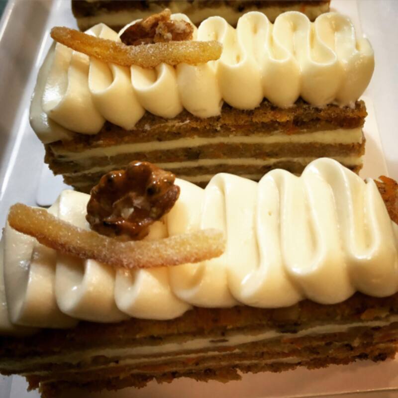 La carta para delivery (hacen envío en el barrio o pedidos vía Rappi a toda la ciudad de Buenos Aires) incluye salados, como wrapps de salmón ($ 400), sandwich de rúcula, jamón serrano y cremoso ($ 365), panini de albahaca, muzzarella y tomate ($ 255). Entre los dulces, en formato mini torta, se puede elegir: cheesecake (tradicional, de dulce de leche o de chocolate blanco), ópera de pistacho y choco, lemon pie, crumble de manzanas ($ 200 promedio la unidad), además de scones, macarones, cookies y budines.