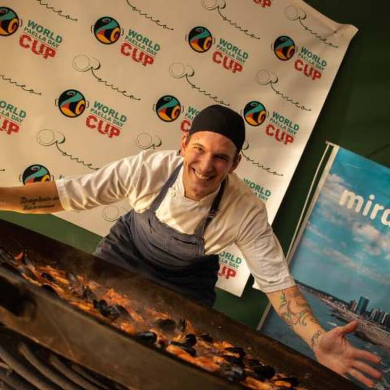 "Esta versión de paella la vengo haciendo hace dos años. Pero llevo 4 años de investigación. Este viaje sería cerrar una primera etapa, ya que hace dos años que vengo probando arroces y técnicas. Como soy de Miramar y tengo el mar a dos cuadras, tengo calamar, tomate de la zona, un pimentón argentino, un arroz orgánico también de Argentina, que es especial para paella. Además cuento con pesca del día, langostinos, calamaretis, mejillones, etc. Trabajo con productos de la zona y le pongo pasión a la cocina". "Hasta ahora tengo mas de 5 mil votos, soy el primero de los 36 participantes de todo el mundo".