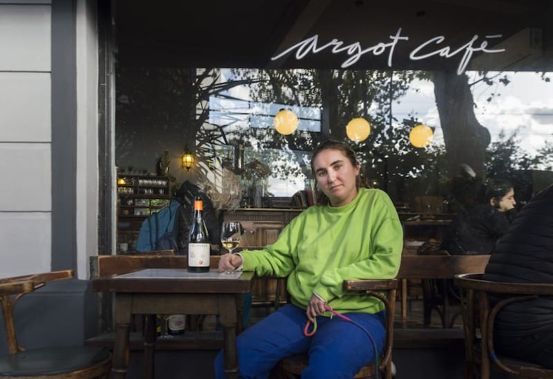 Son las tres de la tarde de un cálido miércoles otoñal. El sol se cuela por el ventanal y se refleja en las antiguas copas de cristal (de distintos tamaños) prolijamente dispuestas en los estantes del pintoresco Argot Café en Villa Santa Rita. El salón, con pisos antiguos que marcan el paso del tiempo, está concurrido. Aunque las mesas más codiciadas se encuentran en la vereda, bajo los tupidos árboles y custodiadas por la atenta mirada de "Gata", la perrita galga de la casa. Celina Bartolomé, de 31 años, con su buzo verde manzana y pantalón azul eléctrico, se ubicó en una de ellas, cerquita de la entrada. Está acompañada de "Dibu", su pequeño cachorrito (el nombre es en honor a Emiliano Martínez, el arquero de la selección argentina) y tres botellas: un Naranjo; otro Malbec y un Clarete de la bodega Pielihueso, su emprendimiento familiar de vinos orgánicos y de baja intervención.