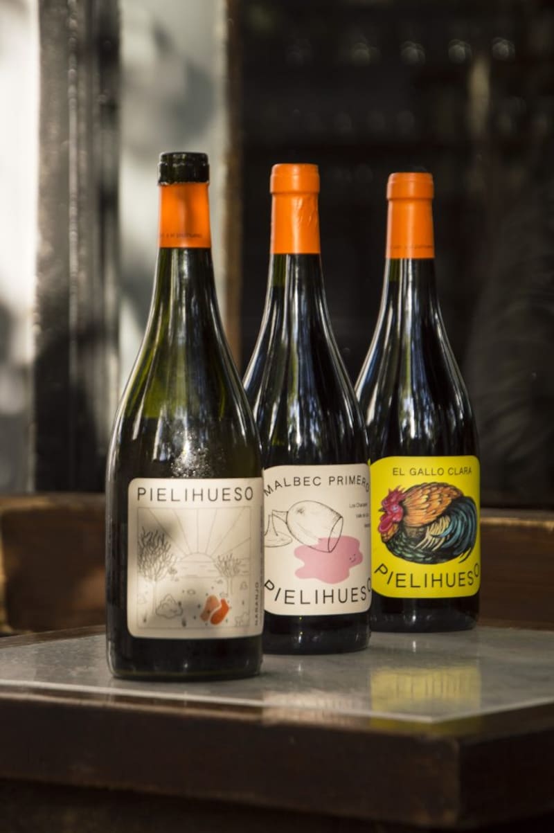 Se le ocurrió a mi papá y es en honor al primer vino que hicimos en 2017: un naranjo. En ese momento, parece que estoy hablando como si fuera hace cien años, pero fue hace seis, en Argentina no existía la categoría de vino naranjo. Nadie llamaba a los vinos, "vino naranjo". Entonces en nuestro afán de explicarlo un poco, dijimos llamémoslo "Pielihueso", que es como un juego de palabras. Porque el vino naranjo está hecho con la piel y la semilla de la uva. En la jerga agro a la semilla se le dice "hueso". También el nombre representa un poco el espíritu e impronta del proyecto familiar: le ponemos todas las ganas, energía: "la piel y el hueso" a cada botella.