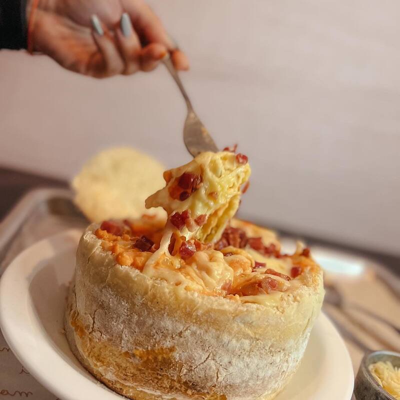 El Volcán de Ñoquis se presenta sobre un pan de masa madre. En el interior trae ñoquis artesanales acompañados del clásico "tuco Monti" y una "erupción" de queso mozzarella.