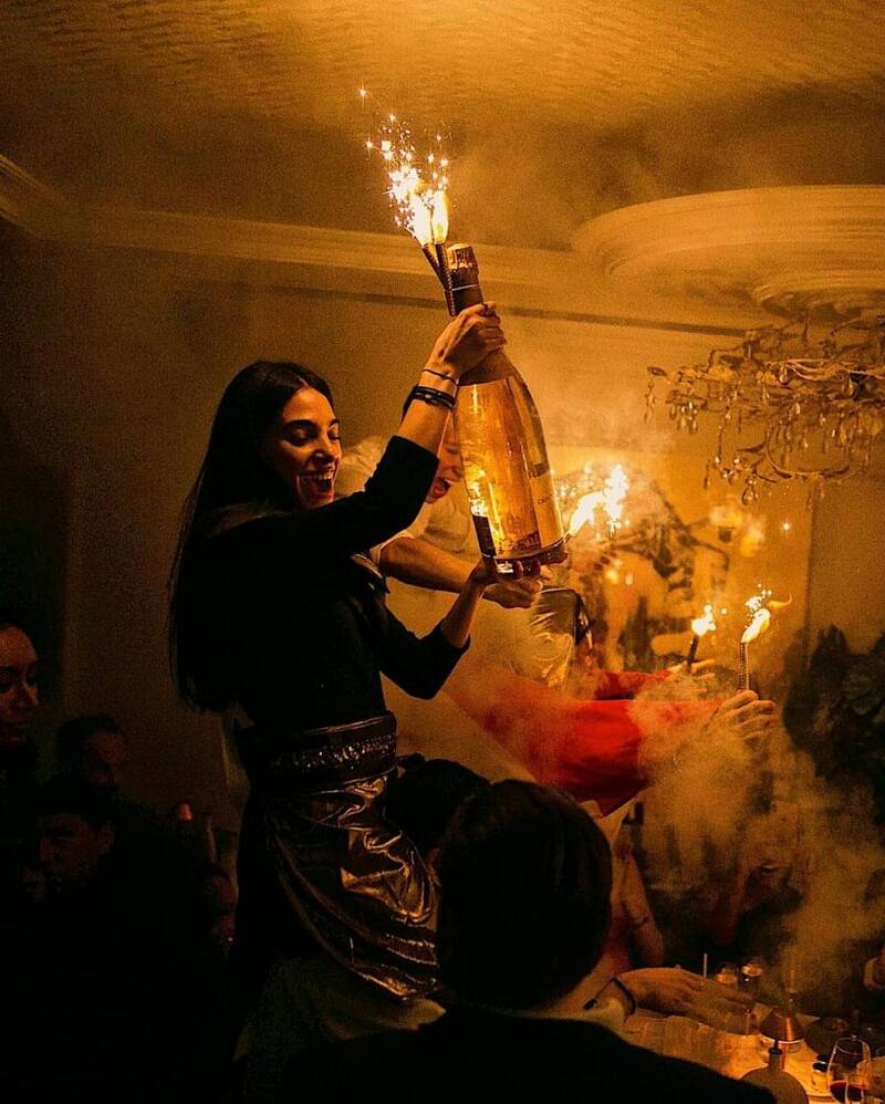 «Pero...¿Cómo es la verdadera experiencia Bagatelle? A partir de las 23 horas, la luz se vuelve tenue y ¡empiezan a circular botellas de champagne francés! Llegan de la mano de mozos disfrazados y provistos de bengalas a modo de festejo. Los clientes bailan literalmente sobre las sillas, y los camareros se unen...»