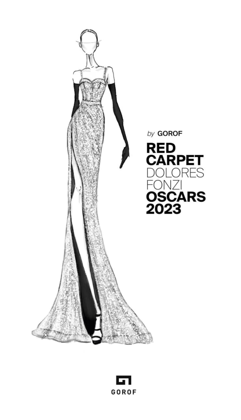 Para crear el vestido, Maria Gorof tuvo como inspiración el estilo Old Hollywood y el dress code impueso para la gala. Para ello utilizó un vestido ya existente y lo adaptó a las necesidades de la actriz y de la ceremonia."Es un vestido de calidad que pudo ser adaptado a medida porque está realizado con materiales nobles. Es un clásico, con algo de contemporáneo, nos pareció que era la mejor decisión para esta ocasión" dijo la diseñadora para un medio local.