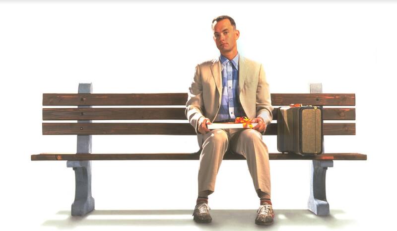 Tom Hanks es Forrest Gump, un hombre ingenuo que resulta estar en medio de casi todos los hechos más importantes de los sesenta y setenta.