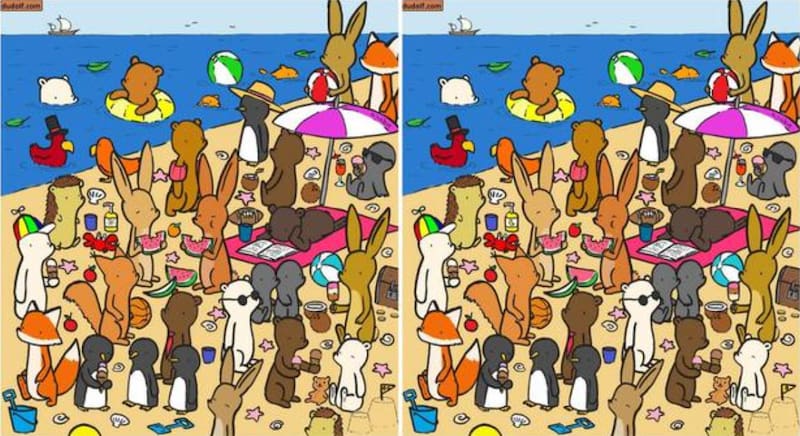 Ya que estamos en verano, la imagen consiste en una playa llena de animalitos animados, que parecen estar pasando un día agradable bajo el sol. La dificultad del reto visual radica en los detalles, ¿serás capaz de resolverlo en menos de un minuto?