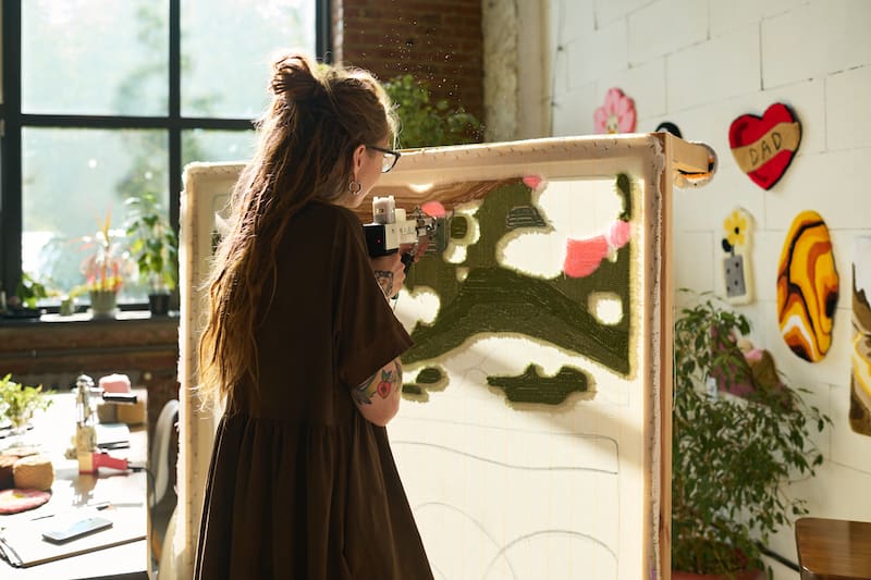 Hoy, las piezas de tufting no solo visten suelos, sino también paredes, muebles y hasta accesorios. Algunas creaciones son tan originales que podrían exhibirse en galerías. Además, el auge del DIY (Do It Yourself) y la búsqueda de objetos personalizados impulsan esta técnica como una alternativa moderna y artística.