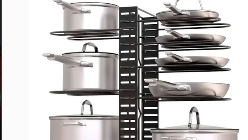 Estas estructuras permiten almacenar varias piezas de forma vertical u horizontal, manteniéndolas visibles y accesibles. Están fabricadas en acero reforzado con tratamiento antioxidante y suelen soportar hasta ocho utensilios entre ollas y sartenes.