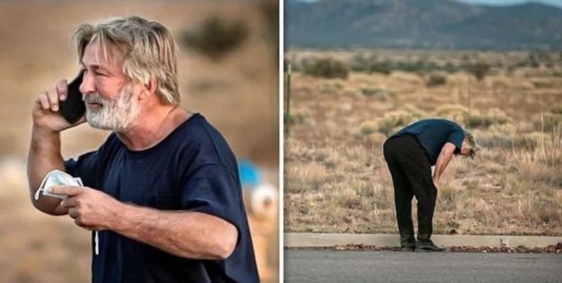 El actor aparece acompañado por su mujer, Hilaria Baldwin, a la que se aprecia grabando el encuentro con su celular. "Era mi amiga. El día que llegué al rodaje la llevé a cenar con Joel (Souza), el director. Éramos un equipo muy, muy bien aceitado, rodando juntos una película hasta que sucedió este horrible suceso", relató Baldwin.