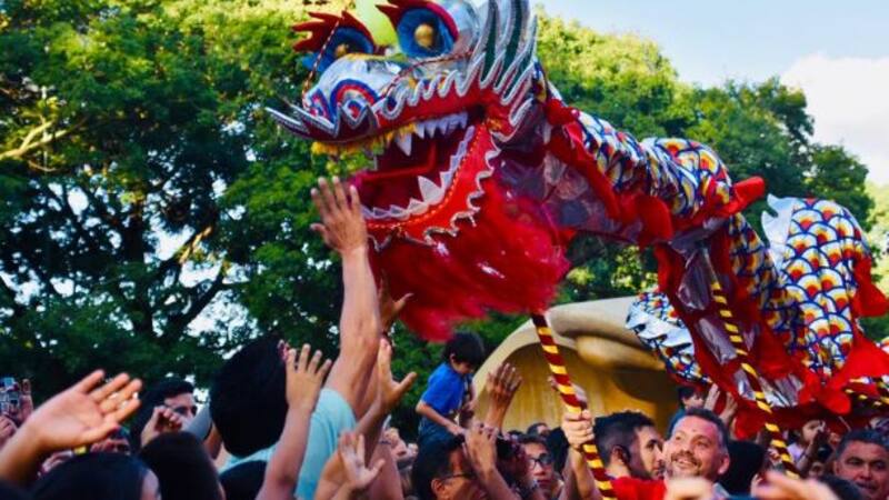 Allí, el protagonista será el Dragón -que simboliza la sabiduría, la cultura y la riqueza- y ofrecerá el ritual “clavado de pupilas , mientras que los leones augurarán la buena fortuna para el año que comienza con su alegría y danzas típicas.