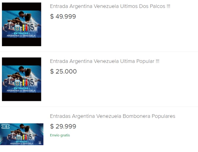 ARGENTINA VS VENEZUELA: PRECIOS DE LA REVENTA DE ENTRADAS
