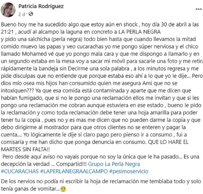 A través de Facebook una clienta contó la incómoda situación que vivió en "La perla negra", un reconocido restaurante de Tenerife, Islas Canarias, España.