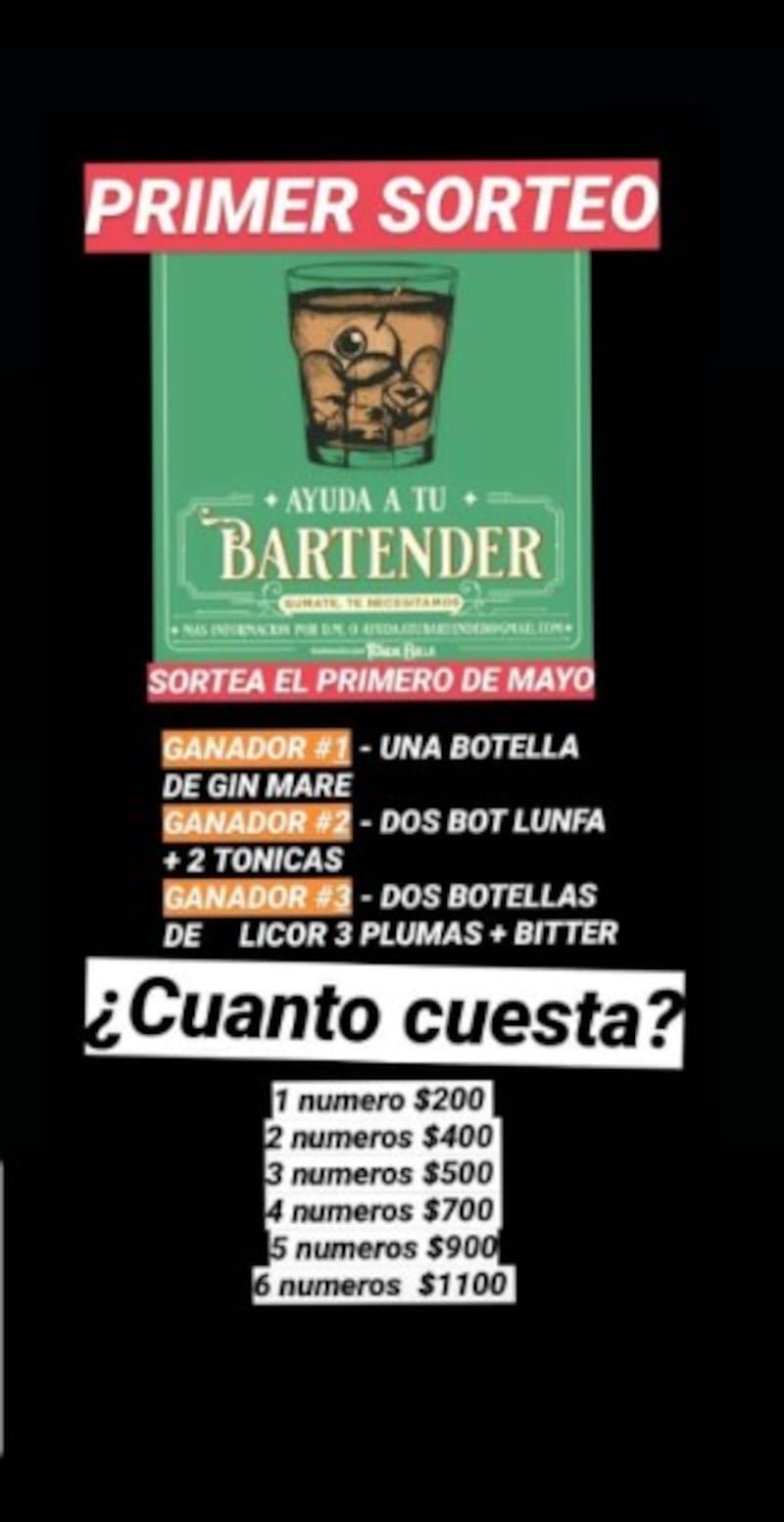 También comenzaron a surgir propuestas e iniciativas solidarias por parte de marcas y referentes de la industria. En este contexto tan complicado, cuatro bartenders lanzaron la iniciativa Ayudá a tu bartender, con la que se proponen juntar dinero mediante rifas para comprar alimentos y productos de limpieza de primera necesidad, para colaborar con colegas que lo necesiten.