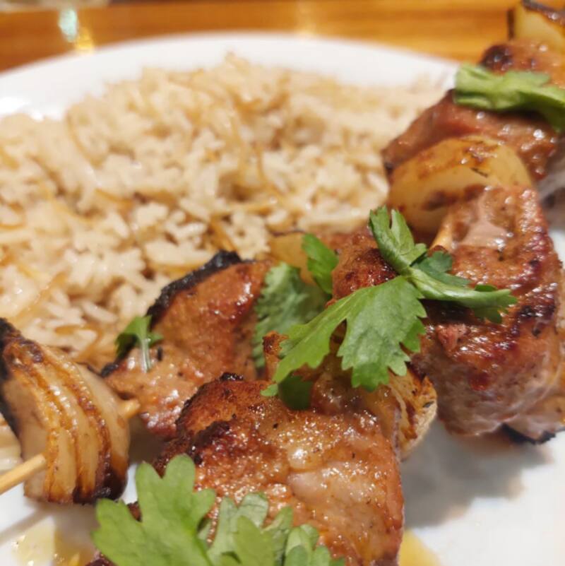 Uno de los platos más populares de la comida árabe son las kebab de cerdo, los famosos palillos de carne con gran variedad de condimentos que se pueden servir en un plato y acompañar con arroz.