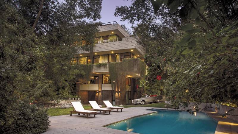 "Implantada dentro de un lote en barranca y rodeada de una frondosa vegetación de nogales, está inspirada en la famosa casa Falling Water, fue diseñada y construida por el arquitecto Von der Becke en 1963. El paisajismo es obra de Gabriela Crespi, quien recreó un espacio selvático de nogales y lianas, respetando el estilo de la arquitectura 'orgánica' de F.L.Wright", se explica en la página de Ginevra Sotheby's International, la inmobiliaria a cargo de la venta.