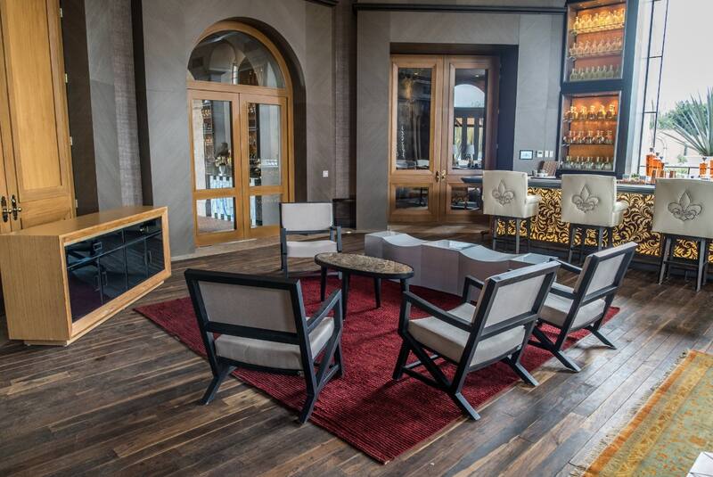 El diseño de interiores estuvo a cargo del estudio del mexicano Joaquín Homs, quien también se encargó del paisajismo en los patios interiores y las terrazas. En el cuerpo principal de La Casona se encuentra la pieza artesanal más importante de la casa: un gran candelabro de vidrio reciclado y madera recuperada que representa a las abejas trabajando en las plantas de agave con las que se elabora el tequila. Esta obra del artista Ernesto Cruz, oriundo de Guadalajara, cuelga en el centro de un habitación rodeada por ventanales que por las noches permite tener una vista de 360° de las estrellas. El resto de las lámparas y apliques hechos de hierro forjado, metal, cobre, vidrio soplado y cerámicas fueron creados por artesanos de Jalisco. La atención en cada uno de los detalles continúa en el resto de la casa: colchones hechos a medida, sábanas bordadas a mano, tapices de Italia y Francia, y textiles de México y los Estados Unidos. Asimismo, todos los muebles fueron especialmente diseñados para reconstruir el estilo de México a principios del siglo XX.