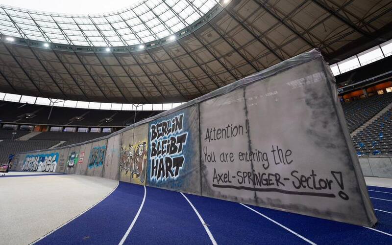 La capital alemana celebra el sábado con gran pompa el aniversario de la caída del telón de acero, erigido por orden del régimen comunista de la República Democrática Alemana en 1961. El "Muro" del estadio olímpico, construido con materiales ligeros, fue desmontado antes del inicio del partido.