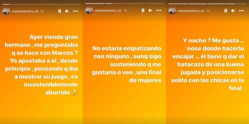 A través de su cuenta de Instagram (@Marianelamira_ok), la exparticipante se mostró crítica ante "El Primo".