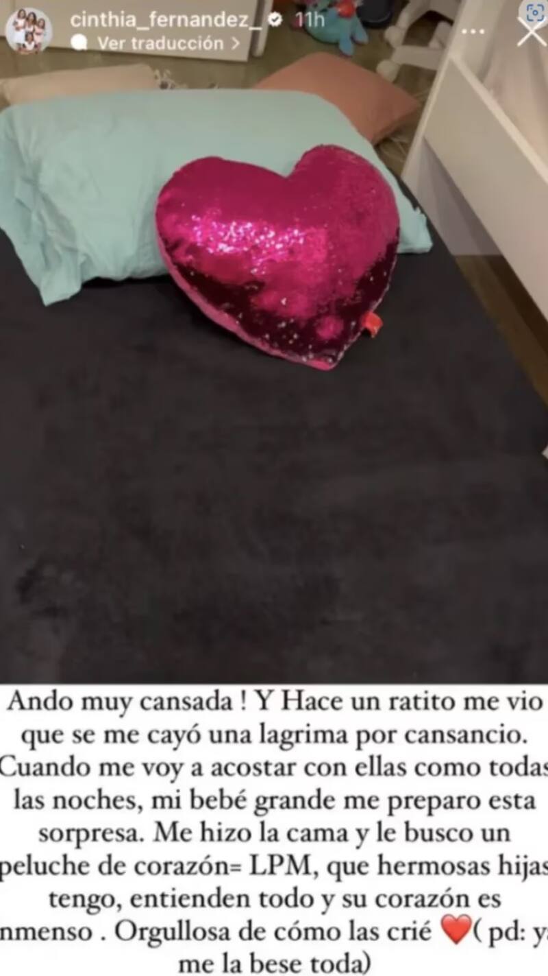 "Ando muy cansada y cuando me voy a acostar con ellas como todas las noches, mi bebé grande me preparó esta sorpresa", contó Fernández.