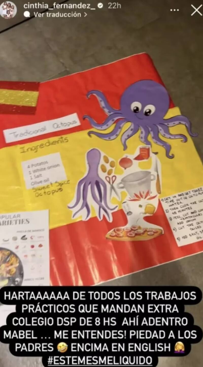 Cinthia Fernándezcompartió una furiosa publicación contra la maestra de sus hijas, cansada de la cantidad de tarea extra que le mandan fuera del horario escolar.