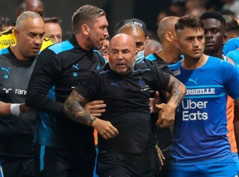 El caos se desató cuando un jugador del Marsella devolvió a la tribuna una botella que habían arrojado los simpatizantes del Niza cuando su equipo ganaba 1 a 0. Los fanáticos se metieron en la cancha y se suspendió el encuentro. Sampaoli defendió a sus dirigidos y lo tuvieron que frenar entre varios de los presentes.
