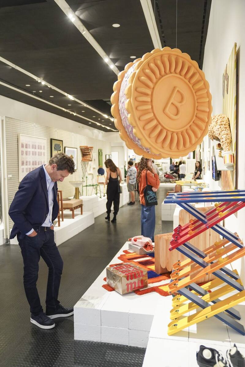 La sección "Veraneo" es un inmenso guiño a nuestros íconos, con la famosa silla Bristol de mimbre blanca (que hoy es Patrimonio Histórico, Social, Artístico y Cultural de Mar del Plata), los alfajores Havanna y una foto de Moria Casán, con su look vedette, en los 70s.
