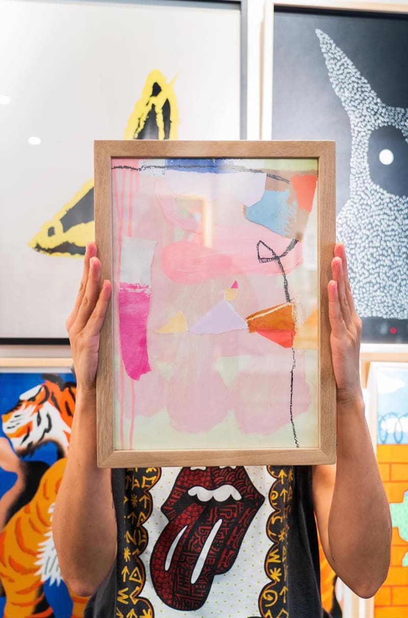 Más allá de tratarse de una plataforma virtual, está muy lejos de la frivolidad de Internet. Funciona como un catálogo grande, no tiene carro sino que cada obra tiene un código y, al que le interese una, puede contactarse por WhatsApp, por mail, por llamado o por mensaje directo de Instagram. "Ahí empieza una relación re linda, se genera una fidelización alucinante. Es como magia lo que va pasando porque viene el referido, vuelve a comprar el que ya compró y, bueno, una vez que elegís tu objeto, tu obra, nosotros nos encargamos del enmarcado y la entrega", explica con pasión su creadora.