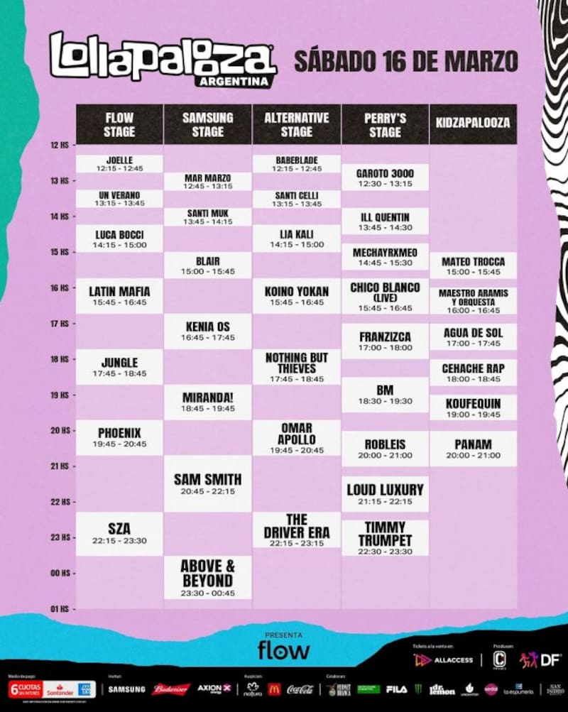 Lollapalooza Argentina 2024: a qué hora toca cada artista