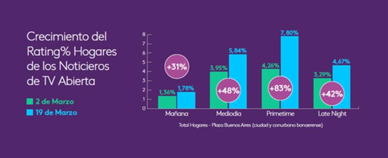 Por su parte, Dario Turovelzky, director general de ViacomCBS Cono Sur y VP senior de contenidos globales, que cuenta entre sus activos con Telefé, explicó "El contexto actual genera un mayor consumo de contenido y eso lo vemos en el rendimiento que están teniendo todas nuestras señales". "En línea con la tendencia positiva en nuestra performance desde comienzo de año, las últimas seis semanas tuvimos un crecimiento sostenido de audiencia, con una fuerte incidencia de los programas periodísticos. La agilidad para conectarnos con las necesidades de nuestros públicos, la buena performance de nuestras redes sociales y los programas de entretenimiento demuestran el incremento en la llegada al público joven adulto".