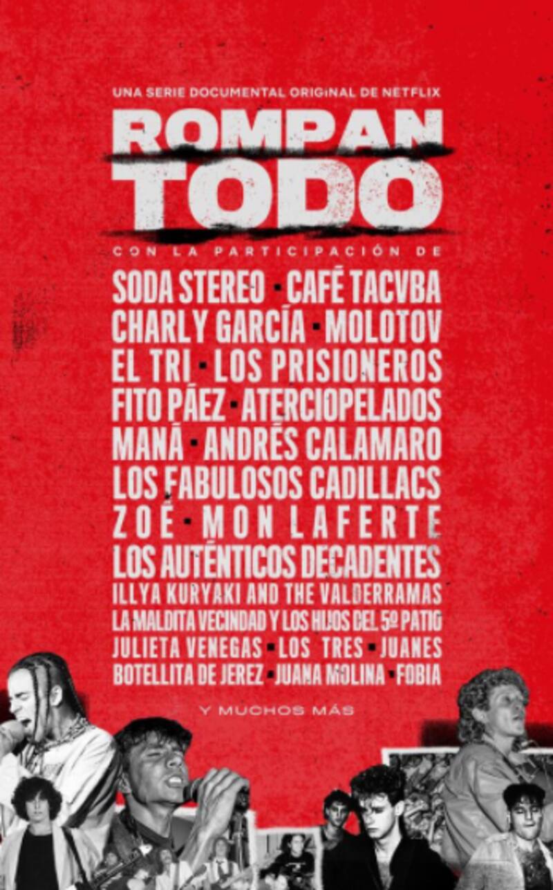 Netflixconfirmó el estreno de Rompan todo: La historia del rock en América Latina. Es una serie documental de 6 capítulos que narra la historia de ese género musical en la Argentina y la región.