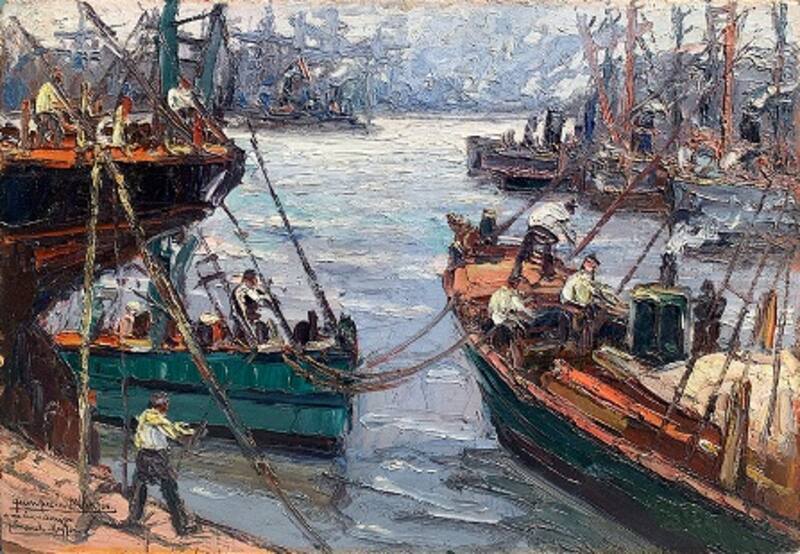 La obra al óleo de Quinquela Martín, de 1930, tiene un lugar más que destacado en la subasta. Vale mencionar también la pieza Las hojas, perteneciente a la denominada "época italiana" de Santiago Cogorno; no obstante lo cual, en el libro El arte americano de Santiago Cogorno hay una cita de los comentarios del artista: "Cuando estoy en Italia pinto América y cuando estoy en la Argentina pinto Europa". La pieza ofrecida en este remate, una témpera sobre papel, se entregará al comprador junto con la obra.