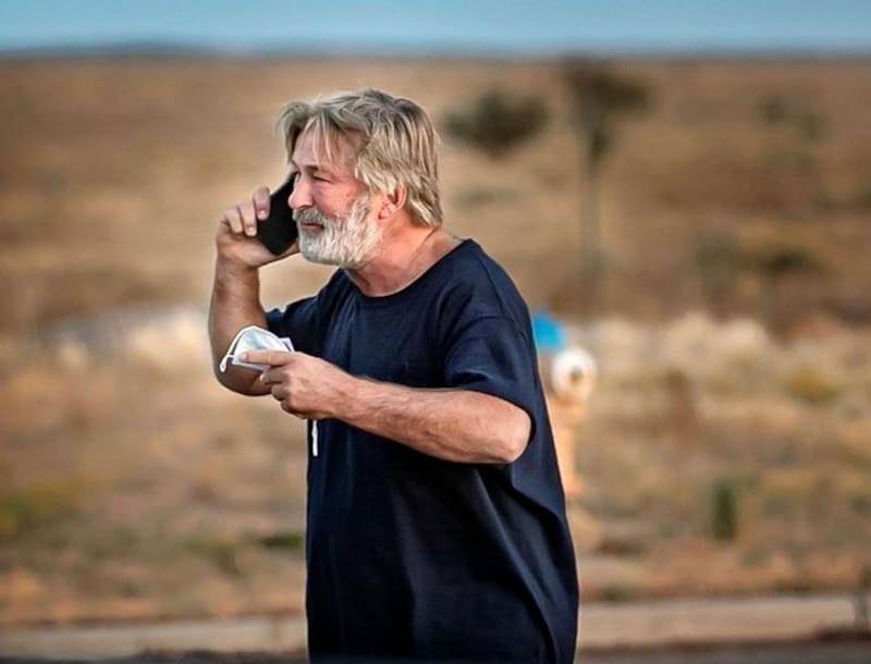En las primeras fotos filtradas en redes sociales, se ve a un conmocionado Baldwin minutos después de que llegaran las ambulancias y la policía al set de filmación.