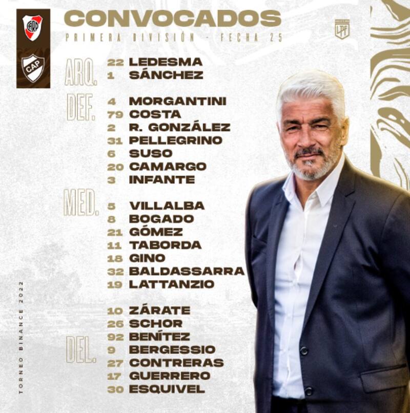 El equipo del Muñeco Gallardo viene de una victoria por 1 a 0 ante Patronato con un tanto de Miguel Borja. Para esta noche el equipo aún no fue confirmado, mientras el DT aguarda por la evolución de Enzo Pérez y se prepara para sumar de a tres con el objetivo de clasificar a la Copa Libertadores 2023.