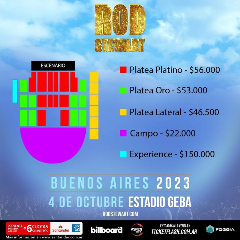 Los tickets podrán conseguir a través de SHOW DE ROD STEWART (ticketflash.com.ar).