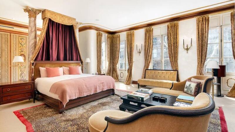 El nivel superior ofrece un spa con baño doble que Sotheby's describe como "uno de los más grandiosos de la ciudad", y los dormitorios del quinto y sexto piso albergan habitaciones y una sala multimedia de estilo marroquí.
