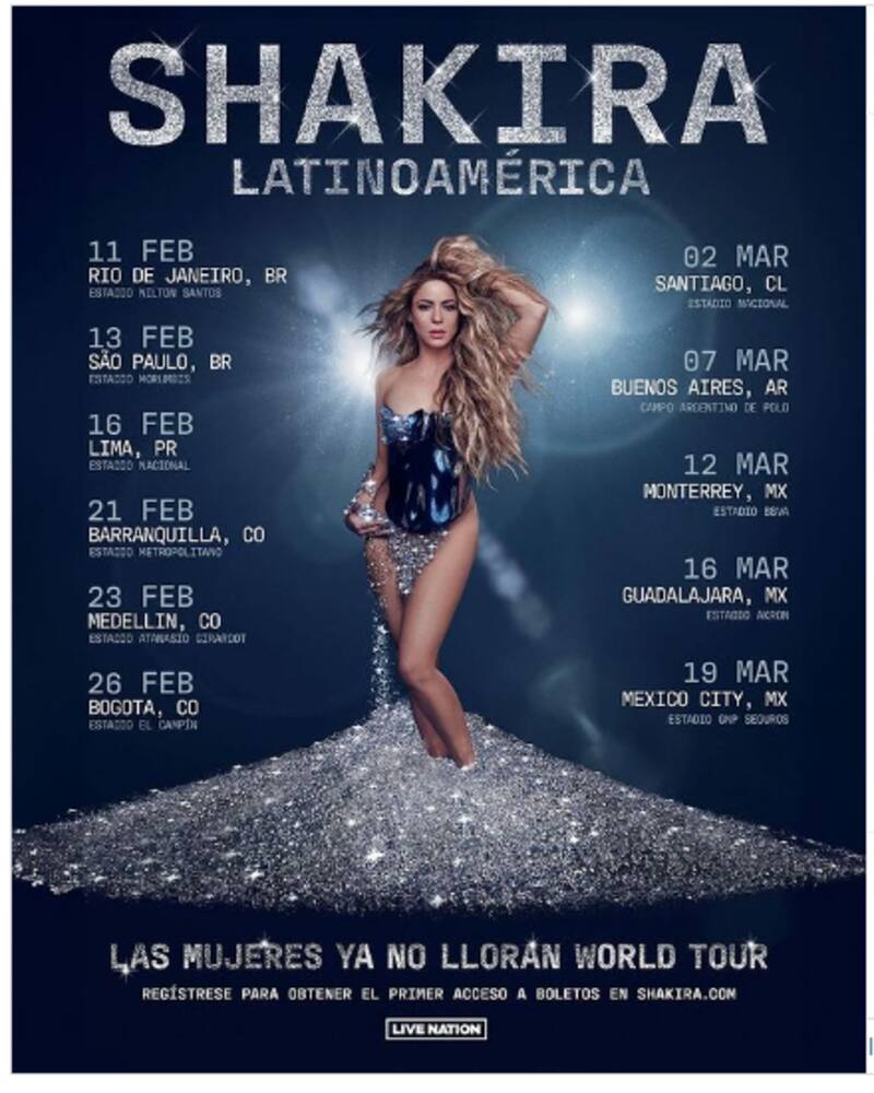 El tour por América Latina empezará el 11 de febrero en Río de Janeiro, Brasil, y seguirá el 13 por San Pablo. Luego pasará en 16 por Lima, Perú, y su natal Barranquilla, Colombia, el 21.
