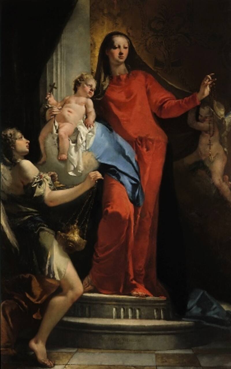 También religioso es el tema del Giovanni Battista Tiepolo (1696-1770), seguramente encargado por la orden de los Dominicos para alguna Iglesia en Venecia en épocas de devoción a la Virgen del Rosario. Salió a la venta hace 30 años y está datada en 1735, es de gran formato 246x156 cm y no se publica su base. Creemos que superará los 10 millones de dólares en la venta, puede ser la única obra de importancia del autor que queda en manos privadas y es el mejor ejemplo del Rococó veneciano.