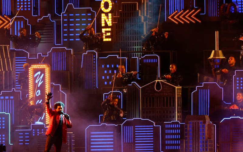 El cantante de pop canadiense The Weeknd encendió el domingo un Super Bowl 2021 restringido por la pandemia con una serie de éxitos frente a un paisaje urbano brillantemente iluminado que evoca el tema de su álbum más reciente, 'After Hours'.