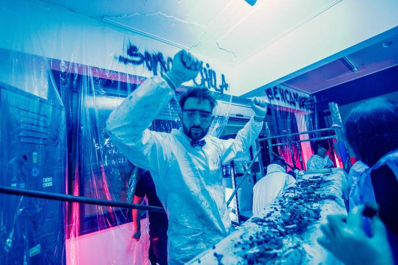 Otra de las propuestas que más llamó la atención de todos fue la de Chila ft. Acus y Kastiello, quienes nos vistieron con batas quirúrgicas para ingresar a su laboratorio mientras Pedro Bargero hacía su arte culinario frente a todosal mejor estilo Jackson Pollock. Él, sus compañeros, los músicos y la artista Camila Malvido de Encamarte nos hicieron bailar en un clima súper entretenido.