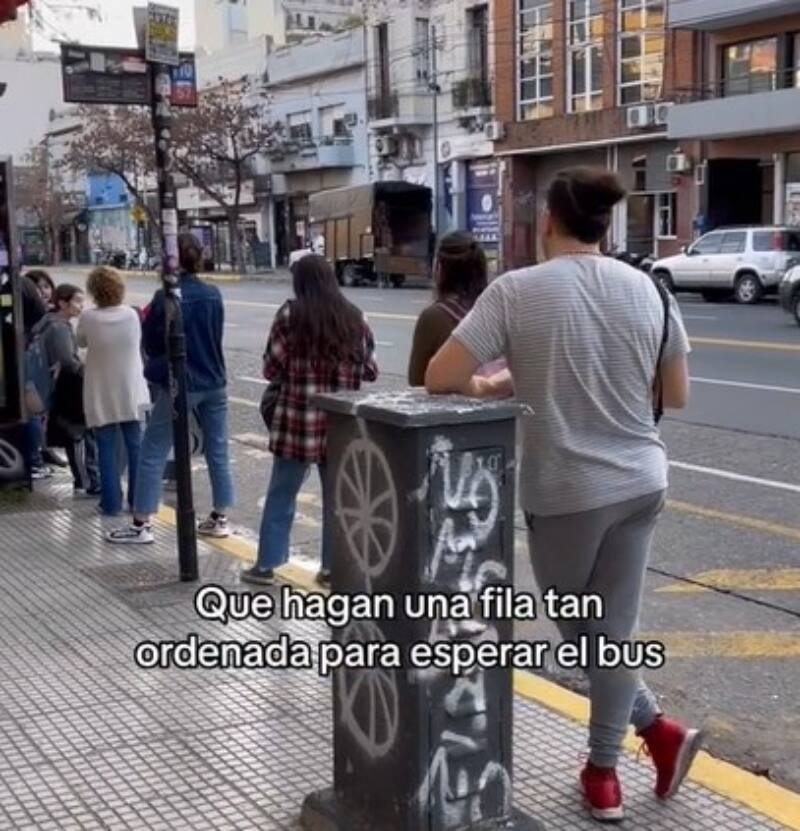 Por otro lado, la francesa remarcó "la fila tan ordenada para esperar el colectivo". En el TikTok se puede ver una hilera de casi 30 personas aguardando por el transporte. La turista remarcó este punto subrayando no sólo el orden, sino la paciencia de los viajeros.