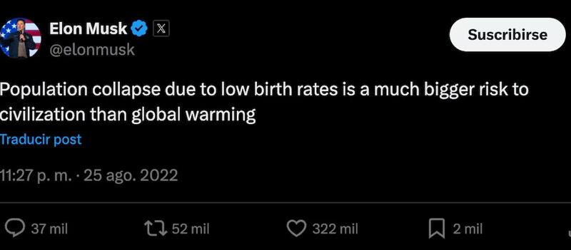 Fue en 2022, tras la drástica caída de la tasa de natalidad en China, que el reconocido empresario expresó su preocupación en redes sociales, alertando sobre un posible "colapso poblacional" que pondría en peligro el futuro de la humanidad.