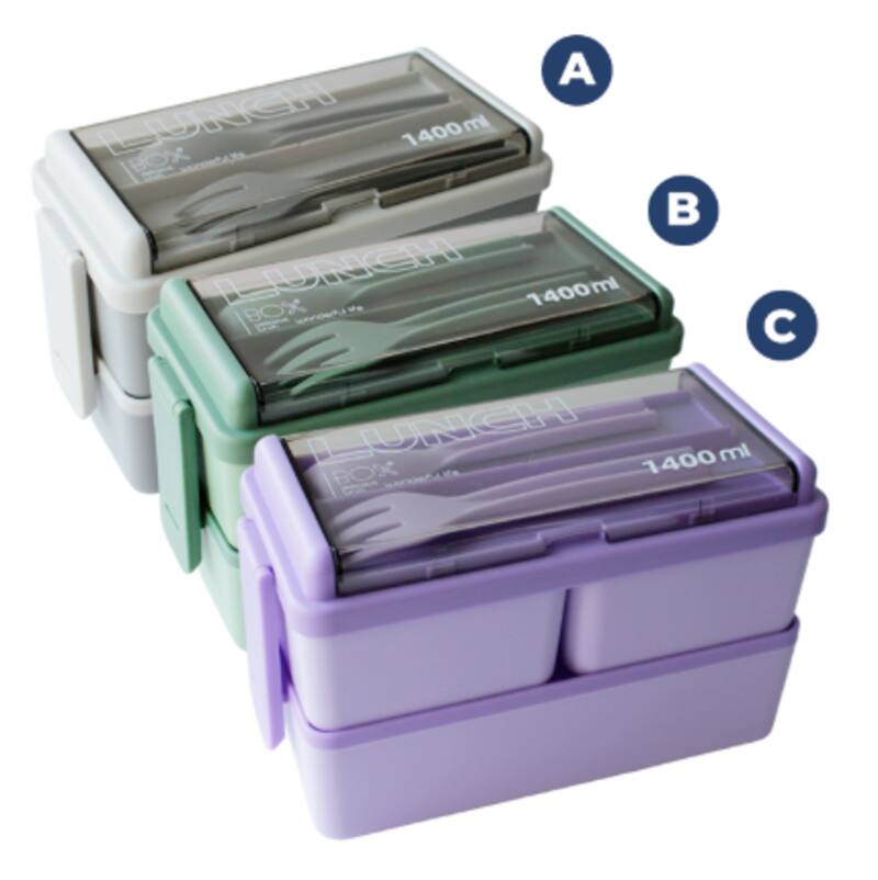 El portacomidas D1 de dos niveles y fácil de limpiar pertenece a la marca Red Flag. Tiene una capacidad de 1400 ml, viene con cubiertos y está disponible en tres colores atractivos: gris, verde y lila.