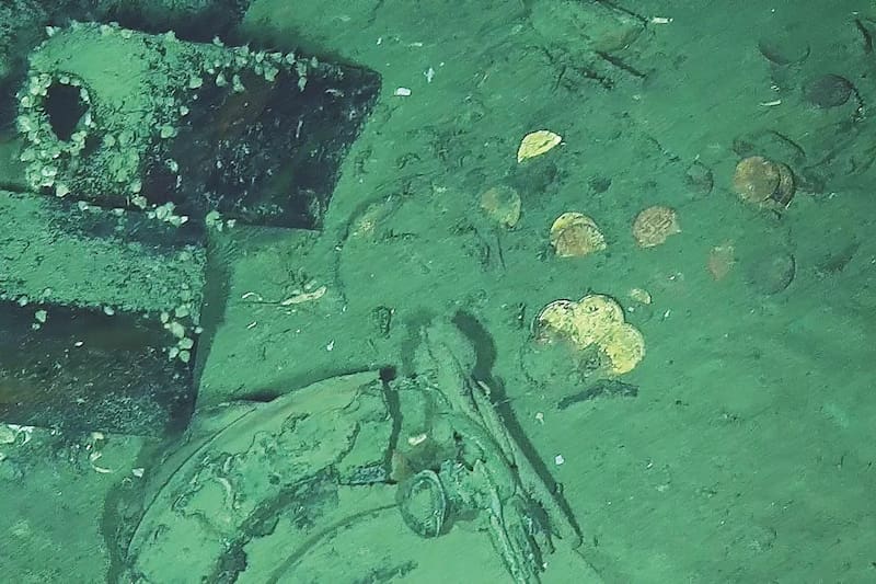 Un equipo de investigación utilizó un vehículo operado remotamente (ROV) para examinar el fondo marino y obtuvo imágenes de alta definición de los objetos dispersos en el sitio del naufragio.